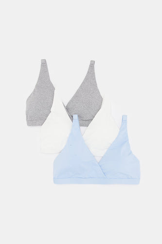 طقم صدرية بدون سلك بألوان متعددة للنساء (3 قطع)