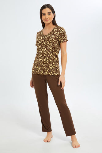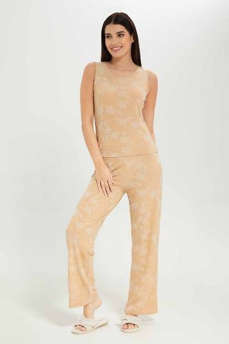 طقم بيجامة باللون البيج للنساء (قطعتينن)