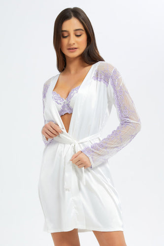 • روب بدانتيل باللون العاجي والليلكي للنساء
