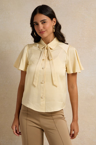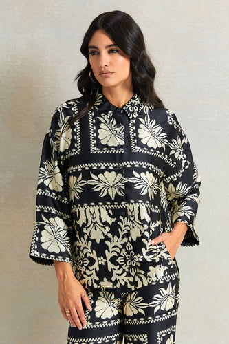 • بلوزة نسائية مطبوعة من الساتان باللونين الأبيض والأسود