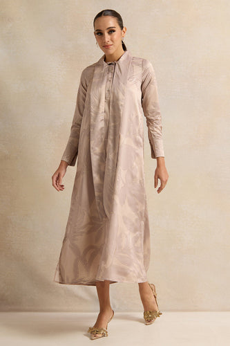 فستان نسائي فضي اللون من قماش الجاكار