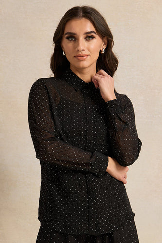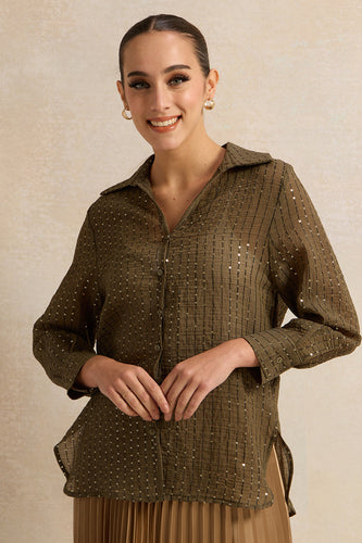 قميص نسائي أخضر مطرز بالترتر بالكامل