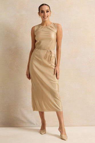 فستان ماكسي بملمس بارز باللون الذهبي للنساء