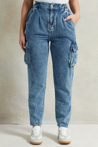بنطلون جينز نسائي أزرق بجيوب مرنة