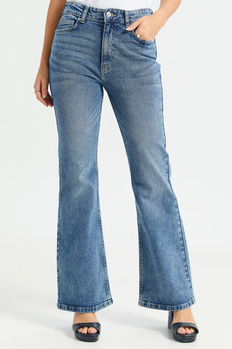 بنطلون جينز نسائي واسع من الأسفل باللون الأزرق