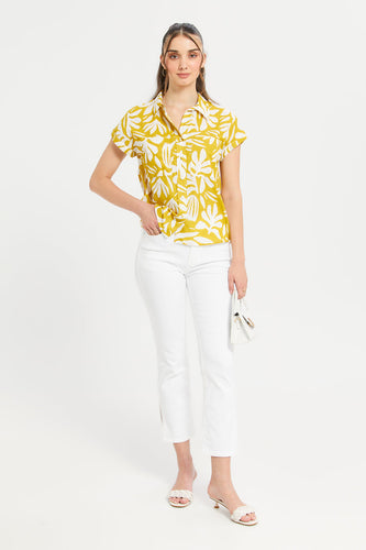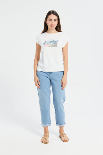 جينز بخصر متوسط بقصة مستقيمة باللون الأبيض للنساء