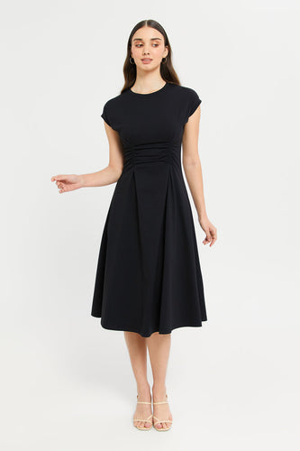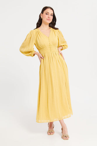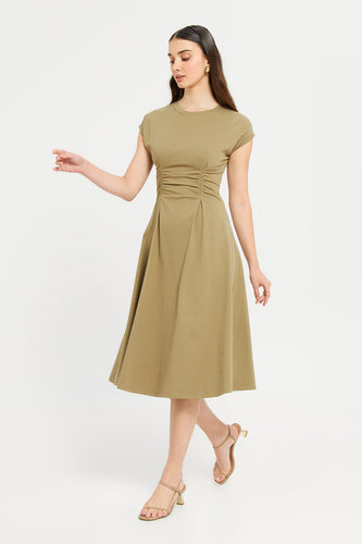 فستان بخصر مطاطي باللون الأخضر للنساء