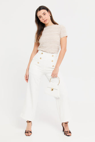 بنطلون مزين بأزرار جانبية باللون العاجي للنساء