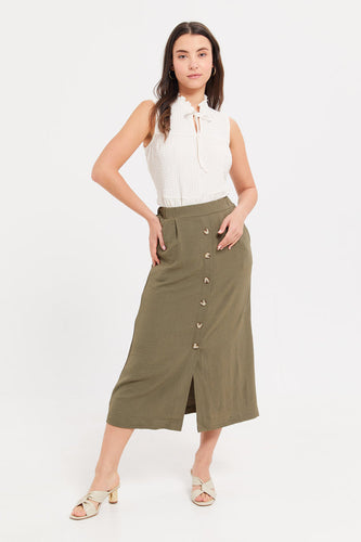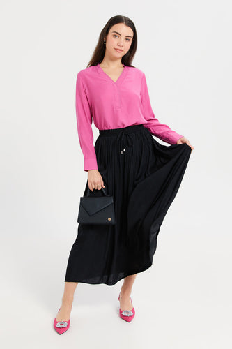 تنورة بخصر مطاطي و كُسر باللون الأسود للنساء