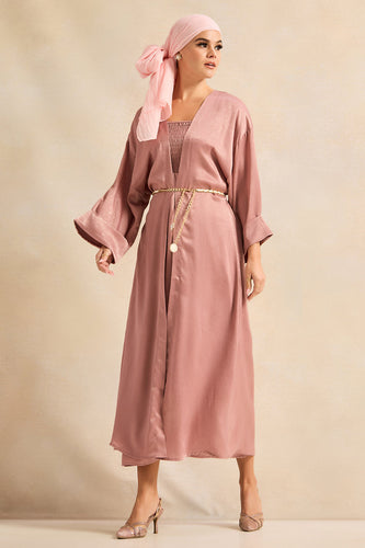 فستان ماكسي بني اللون للنساء مع طيات أمامية