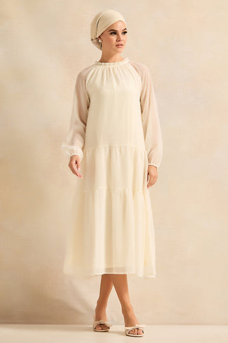 فستان نسائي عاجي بأكمام طويلة