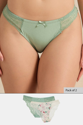طقم بيكيني نسائي باللونين الأخضر والعاجي (عبوة من قطعتين)