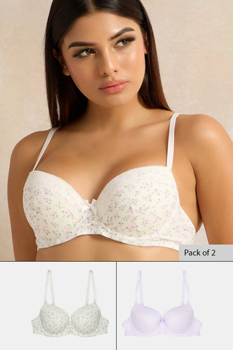 طقم حمالة صدر نسائية من تي شيرت باللونين البنفسجي والعاجي (عبوة من قطعتين)