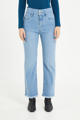 جينز متوسط الارتفاع ومناسب للارتفاع: أزرق