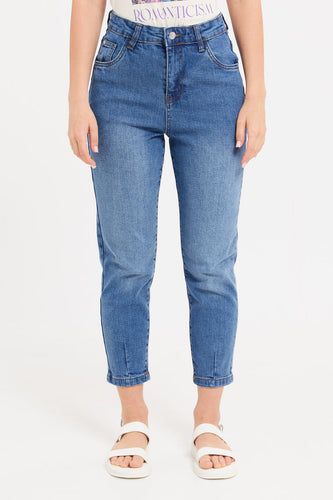 جينز متوسط الارتفاع مناسب للأمهات: أزرق