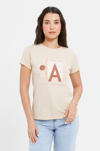 تي شيرت نسائي مطبوع باللون البيج