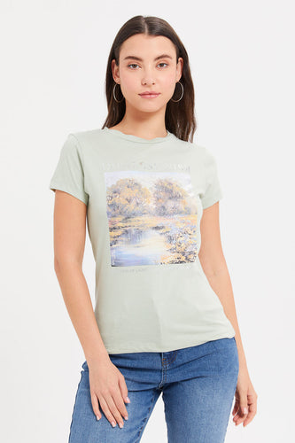 تي شيرت نسائي مطبوع بالنعناع