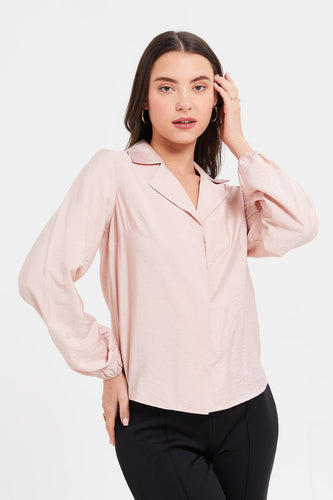 بلوزة بياقة باللون الوردي للنساء