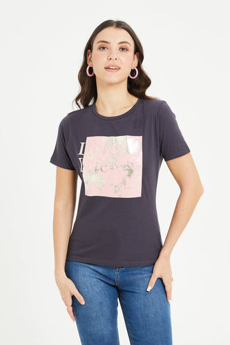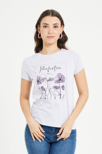 تي شيرت نسائي بطبعة زهور أرجوانية
