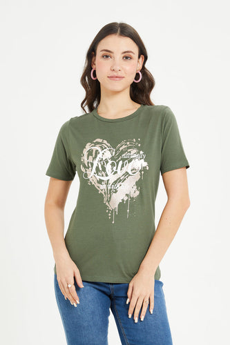 تي شيرت بطبقة من رقائق الزيتون: أخضر داكن