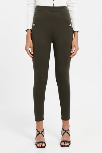 سروال زيتوني بجيب مزدوج وزر: أخضر