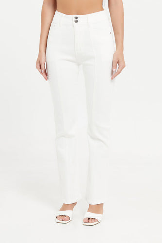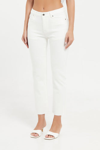 • جينز بخصر متوسط باللون الأبيض للنساء