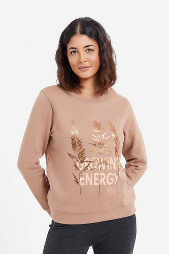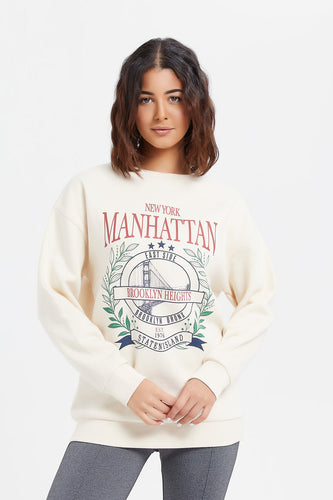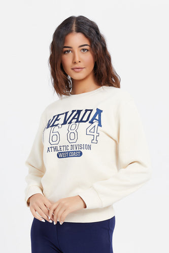 سويتشيرت مطبوع باللون الكريمي للنساء