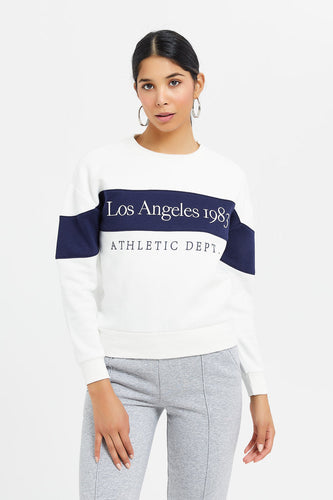 سويتشيرت مطبوع باللون الأبيض للنساء