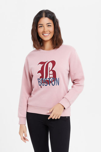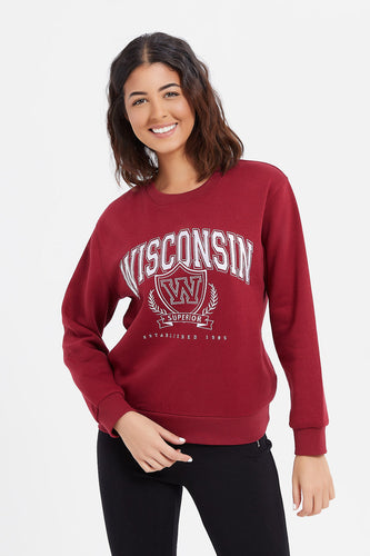 سويتشيرت مطبوع باللون الأحمر الداكن للنساء