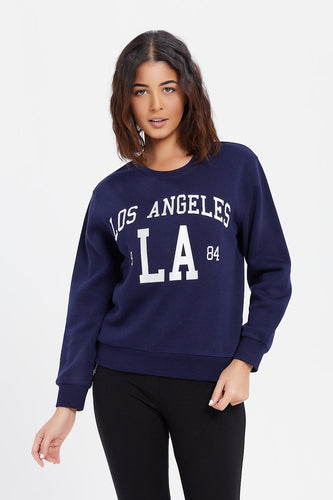 سويتشيرت مطبوع باللون الكحلي للنساء