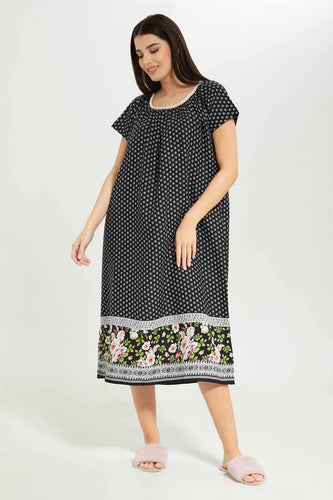 المرأة السوداء المطبوعة ثوب النوم