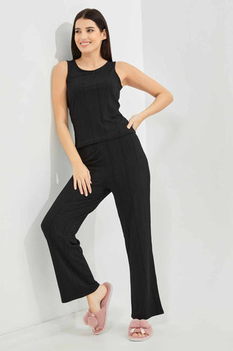 طقم بيجامة باللون الأسود للنساء (قطعتين)