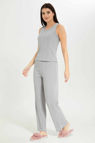 طقم بيجامة باللون الرمادي للنساء (قطعتين)