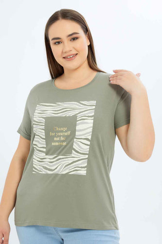 تيشيرت مطبوع باللون الرمادي للنساء بمقاسات كبيرة