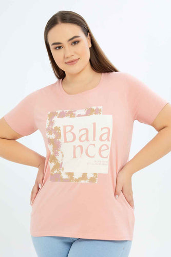 تيشيرت مطبوع باللون الوردي للنساء بمقاسات كبيرة