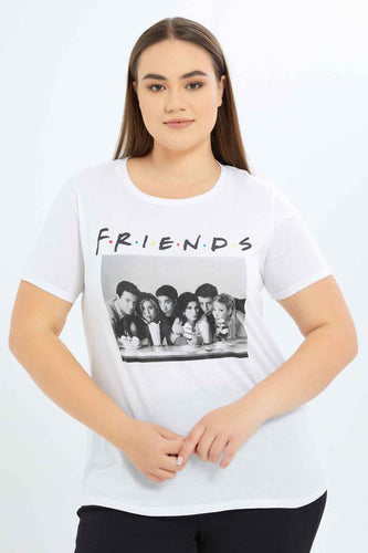 تيشيرت باللون الأبيض بطبعة فريندز للنساء