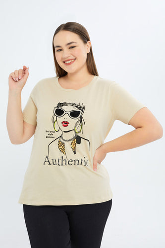 تيشيرت مطبوع باللون البيج للنساء الكيرفي