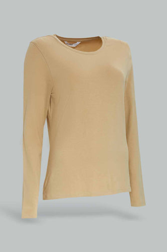 تيشيرت بأكمام طويلة باللون الكريمي للنساء