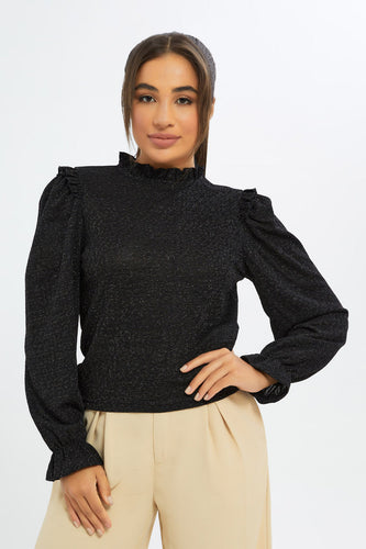 بلوزة توب لوريكس بياقة عالية للنساء - أسود