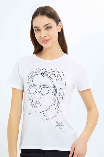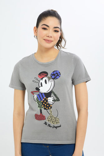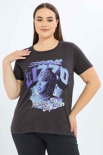تيشيرت مطبوع باللون الرمادي الداكن للنساء