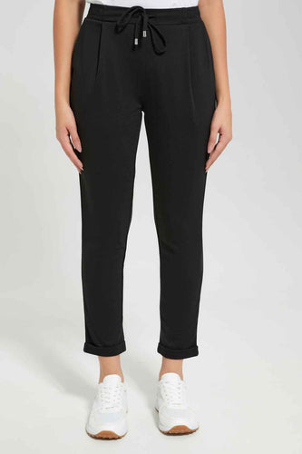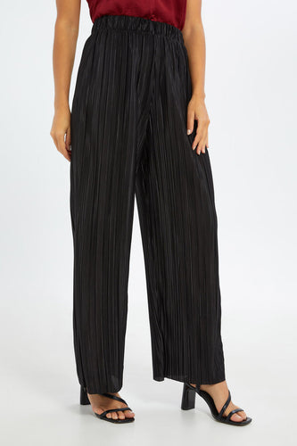 بنطلون واسع بكسرات باللون الأسود للنساء