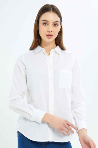 قميص كتان سادة باللون الأبيض للنساء