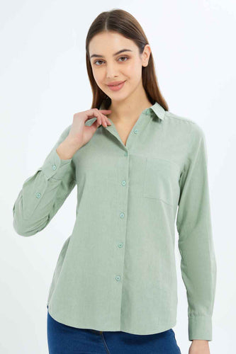 قميص كتان سادة باللون الأخضر للنساء