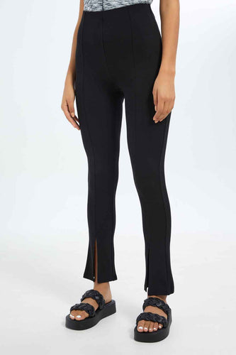بنطلون بقصة مستقيمة باللون الأسود للنساء