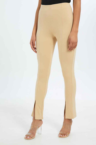 بنطلون بقصة مستقيمة باللون البيج للنساء