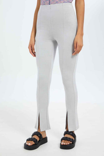 بنطلون بخصر عالي باللون الرمادي للنساء