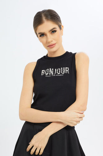 تيشيرت مطبوع باللون الأسود للنساء
