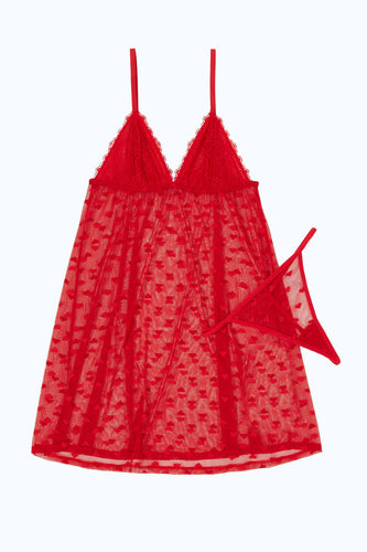 طقم فستان بيبي دول باللون الأحمر للنساء (قطعتين)