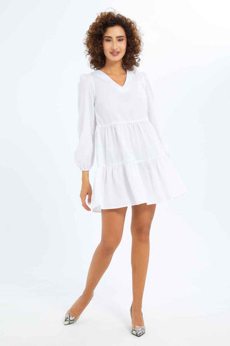 فستان أبيض بوبلين للنساء