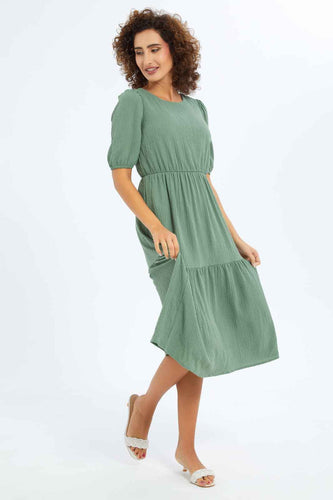فستان مكشكش باللون الزيتي للنساء